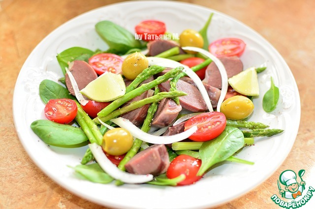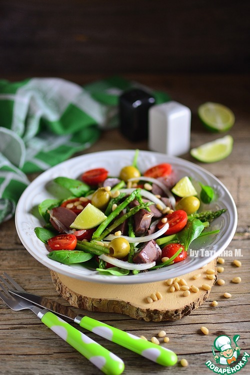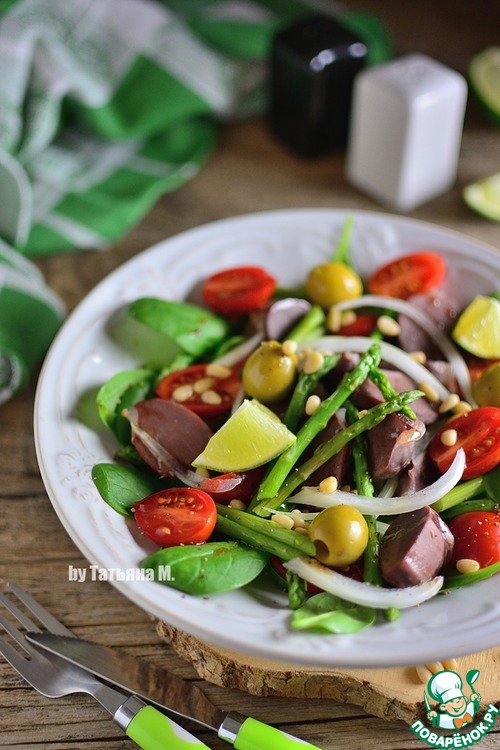 | Очень вкусный и простой в приготовлении салатик, желудки можно заменить на филе утки, но я вам предложу свой вариант салата, так как утиные желудочки нежно люблю! Ко всему прочему салат легкий и полезный! |