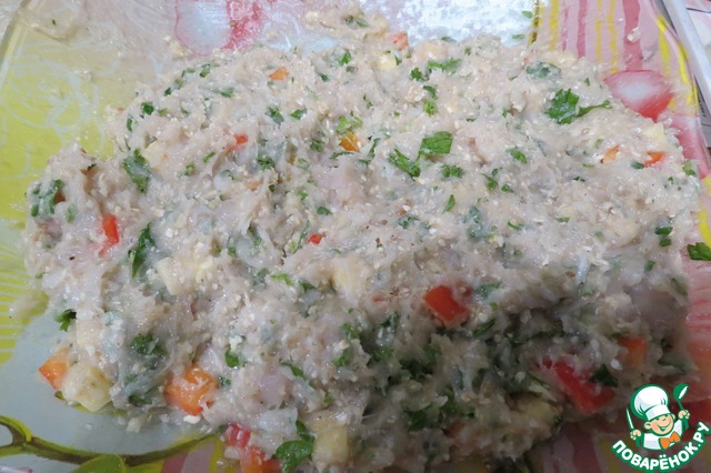 Вымешать руками фарш, сформировать котлеты (примерно 8-10 штук, в зависимости от размера грудки).