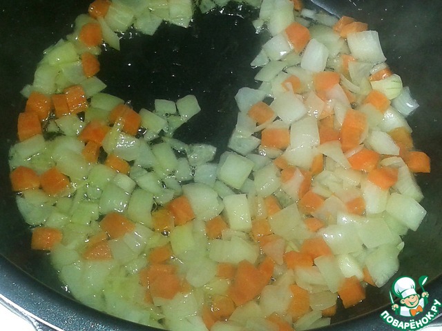 Я готовлю рагу в мультиварке, но с тем же успехом можно делать это в жаровне. Нарезаем кубиками лук и морковь, обжариваем на растительном масле в чаше мультиварки с открытой крышкой или в жаровне. Помешиваем, чтобы не пригорело. Наша задача - слегка притомить лук, сильно зажаривать его не нужно.