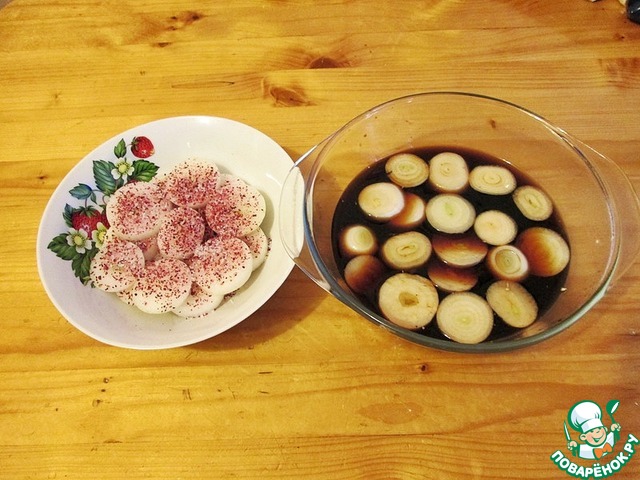 И оставляем по мариноваться, справа замариновал не много лука просто в бальзамическом уксусе, на жарку.