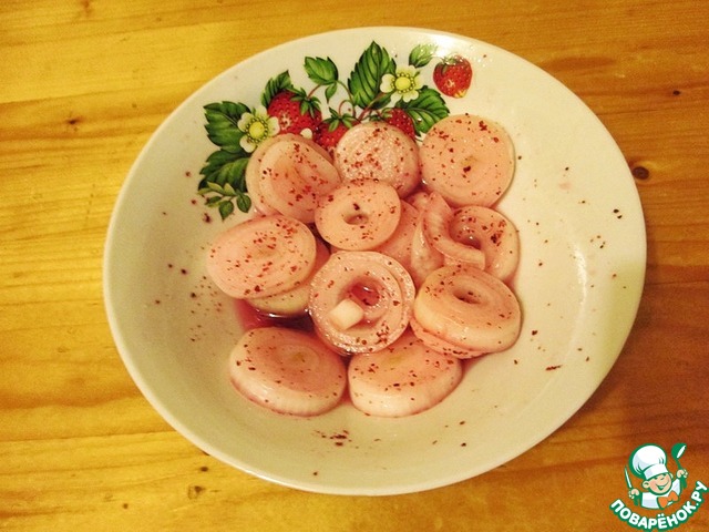 Пока мясо маринуется займемся гарниром. Для меня под шашлык лучше лука маринованного ничего нет.