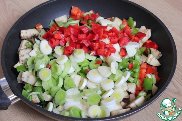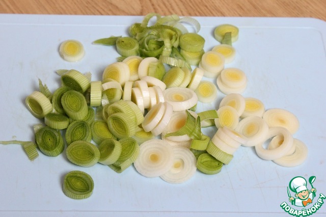 Лук-порей нарезаю кружочками. Чеснок измельчаю.