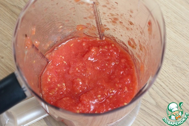 С помидор снимаю кожицу и измельчаю их в блендере. Если времени совсем мало, то кожицу можно не снимать. Но если снять, овощной соус получается нежнее.