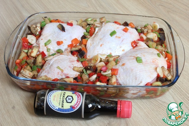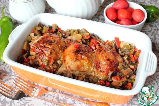 | Куриные бедра, запеченные в духовке с баклажанами и перцем, простое и вкусное блюдо. Прекрасный вариант для домашнего ужина. |