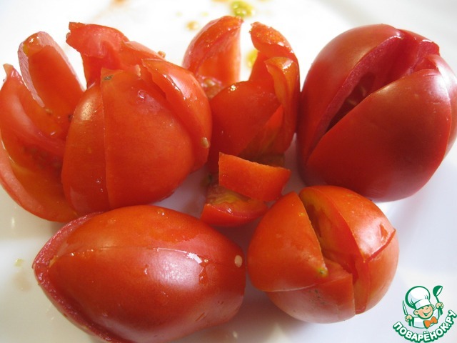 Сливки надрезать крест накрест не до конца, черри также, и еще раз сделать разрезы между этими лепестками, примерно так (незнаю, понятно ли пишу, думаю на фото более менее видно), мякоть по возможности убрать.