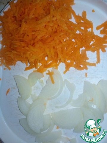 Пока тушится капуста, нарезать лук полукольцами, а морковь натереть на терке.