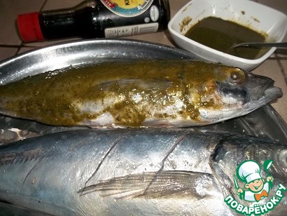Маринадом хорошо намазать рыбу внутри и снаружи. Оставить на 1 час.