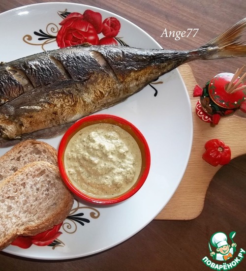 | Рецепт очень прост, рыба получается вкусная, сочная и нежная. Можно таким образом подготовленную рыбу запечь не только в духовке, но и на мангале. Для подачи важен и соус, пикантный, чуть острый, он замечательно сочетается с запеченной рыбой. Подавать как в горячем, так и в холодном виде, на закуску. |