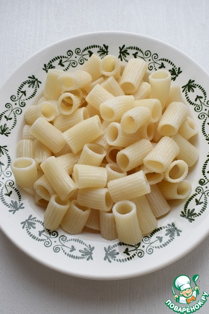 Отварим макаронные изделия альденте. Откинем их на дуршлаг, промывать макароны не нужно.