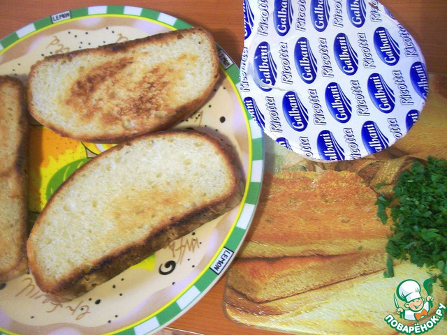 Для приготовления этой брускетты нужна чиабатта. Если она у Вас имеется - великолепно, если нет - можно испечь вот по этому рецепту http://www.povarenok .ru/recipes/show/650 53/. Я предварительно напекла чиабатт сама.