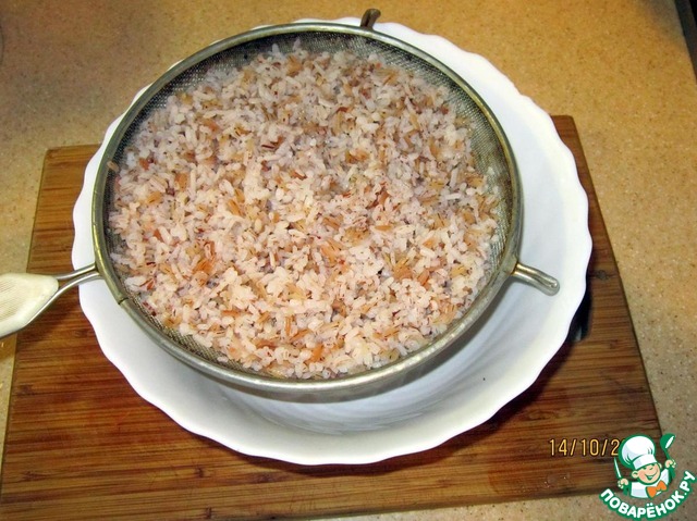 Прошло 1,5 часа, рис после замачивания.