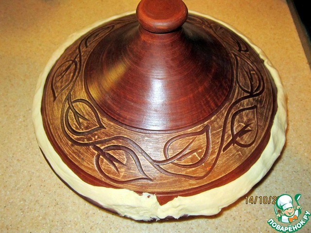 Раскатываем бездрожжевое тесто по дну таджина.