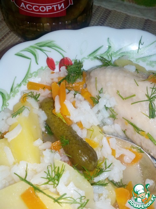 Рис тщательно промываем в холодной воде. Желательно рис и картофель заранее замочить в холодной воде, чтобы вышел весь крахмал.