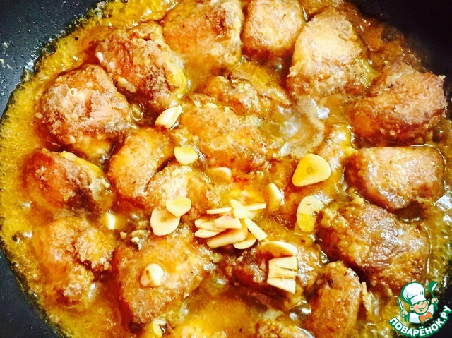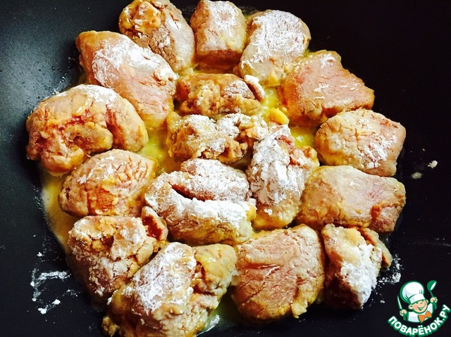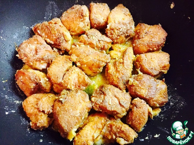 Обвалять кусочки филе в крахмале (маринад оставить!)
