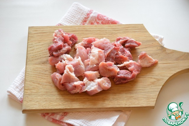 Свинину нарежьте на небольшие кусочки