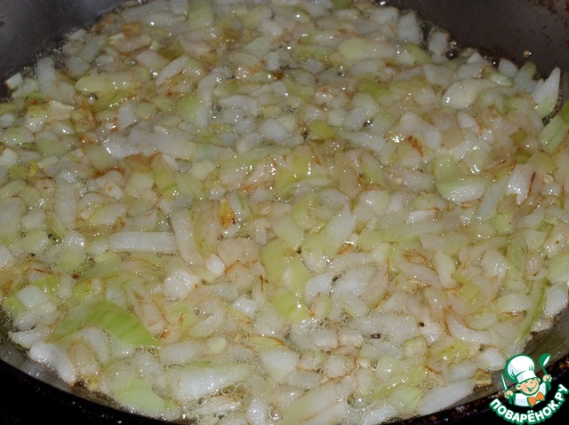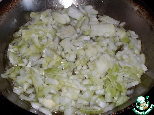 В разогретую сковороду наливаем растительное масло. Выкладываем лук.