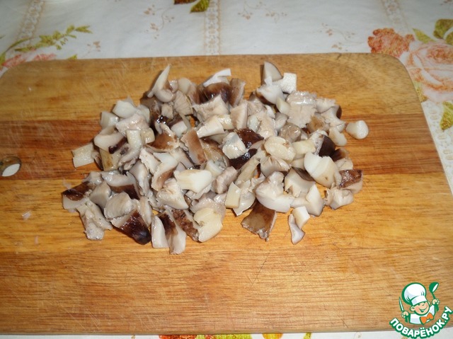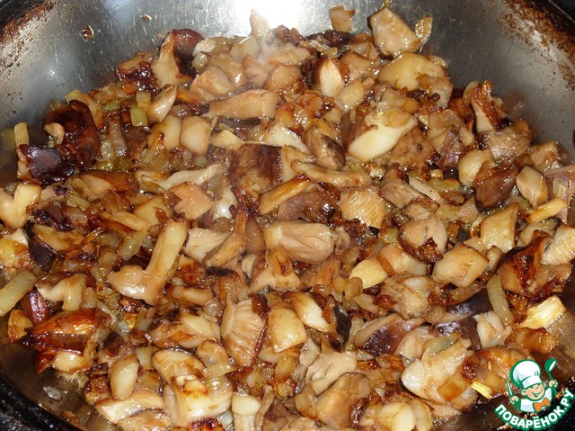 Обжариваем грибы с луком еще 5-7 минут. Затем остужаем массу.