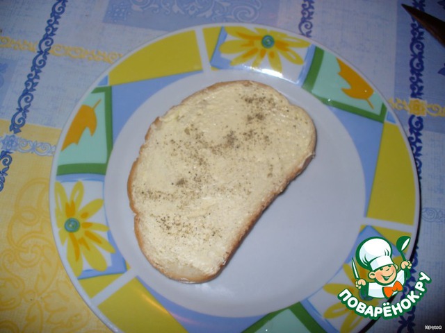 Белый хлеб намазать сливочным маслом, посолить, поперчить.