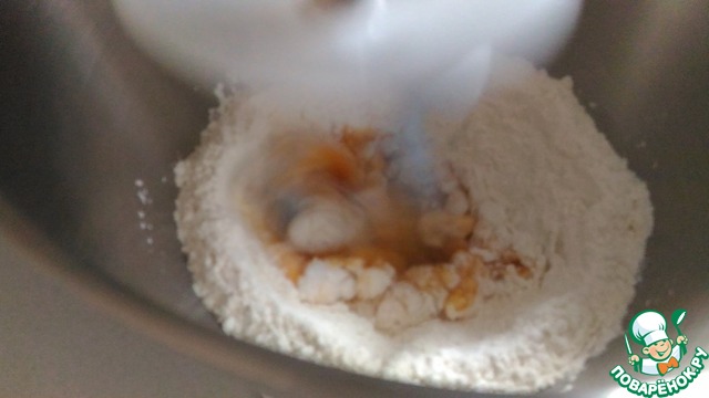 Добавить муку в нашу яично-морковную массу и все тщательно перемешать, вымесить тесто.