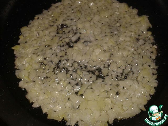Налить растительное масло в сковородку и обжарить лук до прозрачности