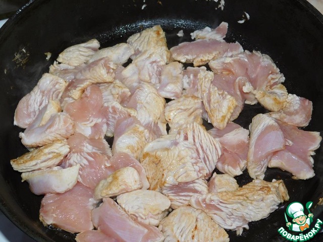Филе индейки помыть, обсушить и нарезать на кусочки.