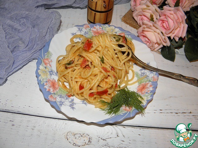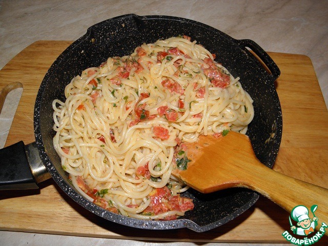 Макароны с помидорами в сырном соусе