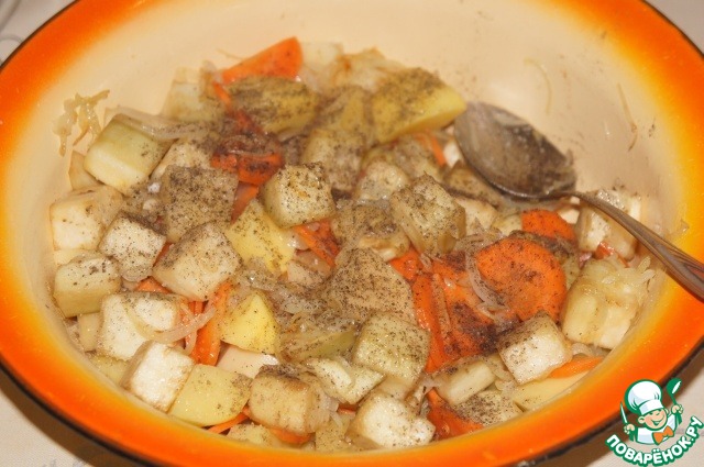 Готовое рагу извлечь из духовки, дать ему чуть-чуть остыть.