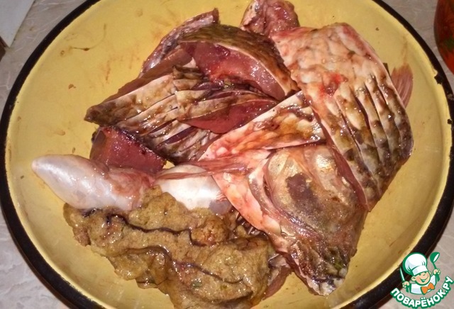 Распотрошите рыбу, только аккуратно разрезайте брюшко, не повредите желчный пузырь (иначе желчь растечется и рыба будет горькой). Удалите жабры (в них собирается обычно вся грязь).