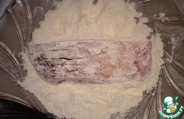 Обваляйте рыбу со всех сторон в муке.