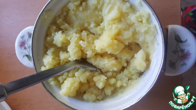 Теперь тщательно разминаем картофель с чесноком. Должна получиться однородная масса без комочков