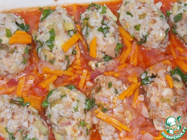 Сформовать небольшие котлетки, выложить в форму для запекания, смазанную маслом.