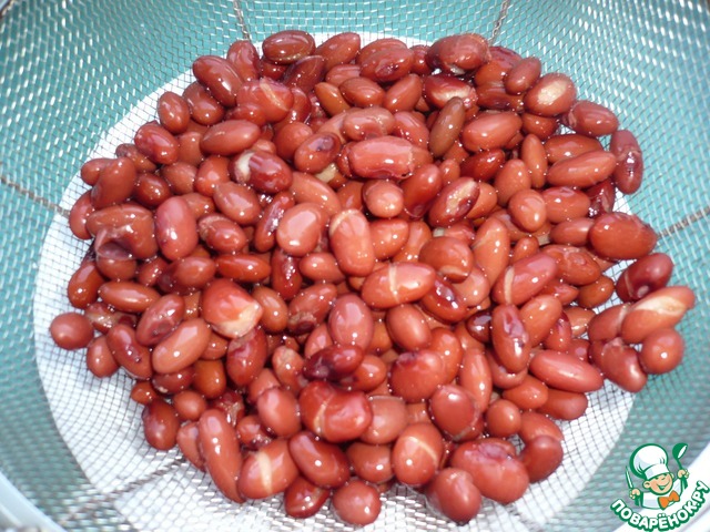 Консервированную фасоль промыть и откинуть на дуршлаг.
