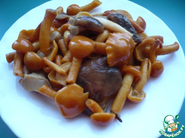 Грибы консервированные (у меня ассорти) промыть и дать воде стечь.