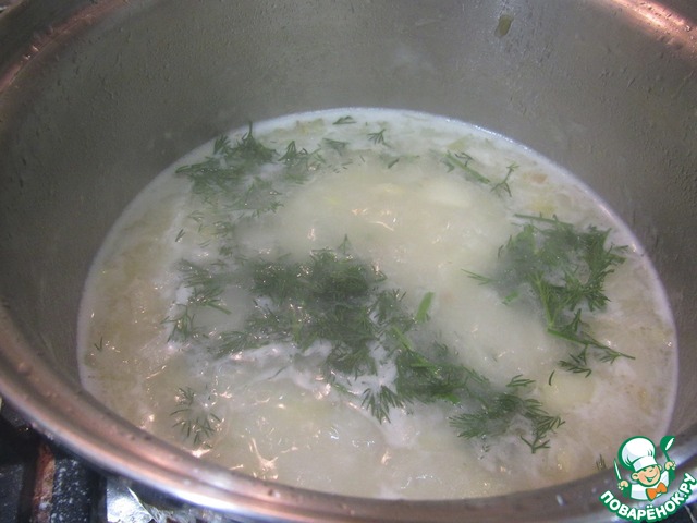 Добавляем зелень: укроп и зеленый лук. Провариваем 5 минут.
