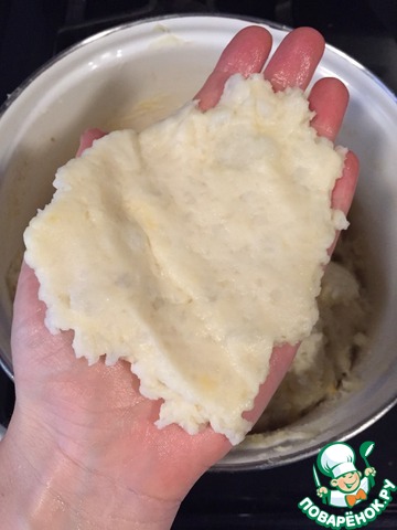 Теперь формируем зразы. Лучше готовить мокрыми руками, тогда картофельное тесто не будет прилипать к рукам.