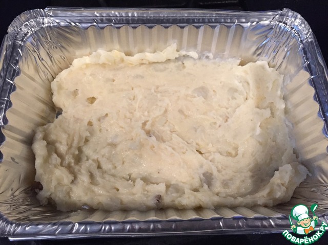 На дно формы положить слой картофельного теста,