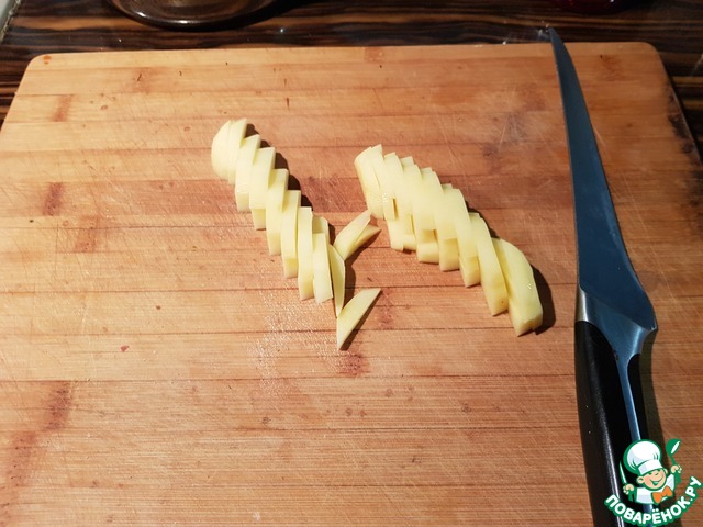 Картофель, моем, очищаем, нарезаем брусочками.