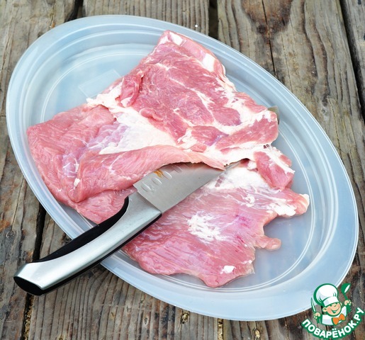 При помощи ножа сделайте вдоль куска надрез и раскройте мясо в виде "книжки"