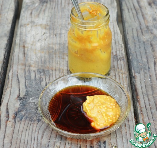 Обвяжите рулет плотно кулинарной нитью и обмажьте остатками горчичного маринада