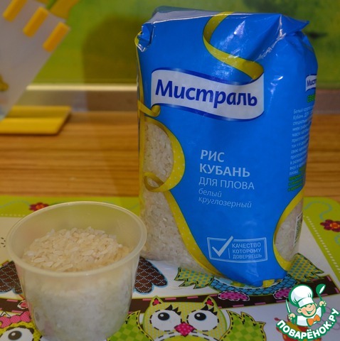 Рис промыть, залить водой и довести до кипения. Варить 15-20 минут. Остудить.