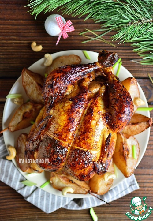 Цыпленок, запеченный с грушами под соусом