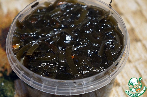 Морская капуста мне попалась с красным перцем, но вкуса готового салата это не испортило.