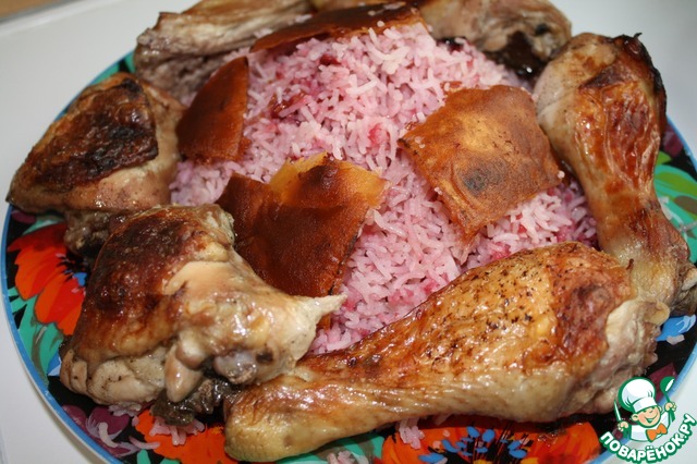 | Плов с вишней-это персидское блюдо, котрое называется"Албалы плов" Вишня придает этому плову очень приятный вкус и аромат. И что важно, не в сезон берется вишня или замороженая, или с компота. Его подают с любым гарниром, куриным, мясным и кебабами любого вида. |
