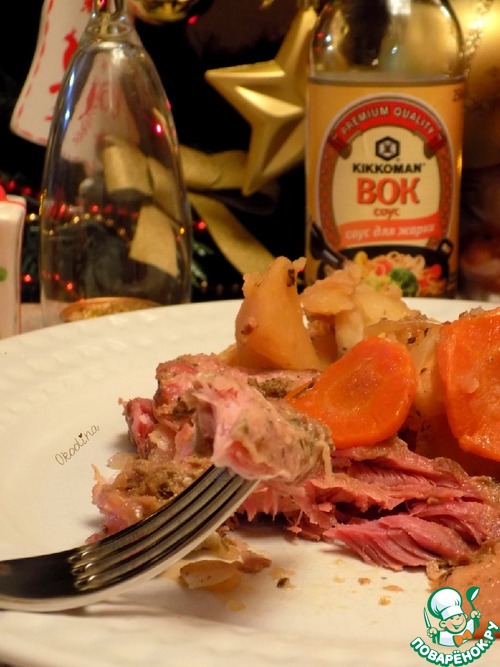 | Существует много рецептов запекания мяса разными способами. Один из способов-запекание мяса в рукаве. Мясо получается сочным, ароматным и нежным. Такое мясо не стыдно подать и на праздничный стол, как основное блюдо. Замечательно подойдёт тем, кто придерживается щадящей диеты и не ест совершенно обжаренной и жирной еды. Здесь абсолютно нет масла и соли. Вместо соли я использовала соевый соус ВОК ТМ KIKKOMAN. Мясо запекла с овощами и айвой, которая придала блюду особенную вкусовую нотку. Нужно пробовать! Это вкусно! |