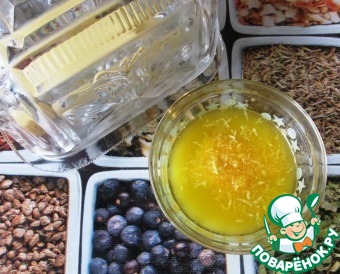 С лимона снимаем теркой цедру. Растапливаем сливочное масло до эмульсии и смешиваем с цедрой.