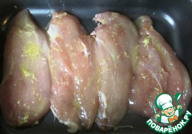 Заливаем 2 больших филе соевым сладким соусом Киккоман на 1-2 часа.