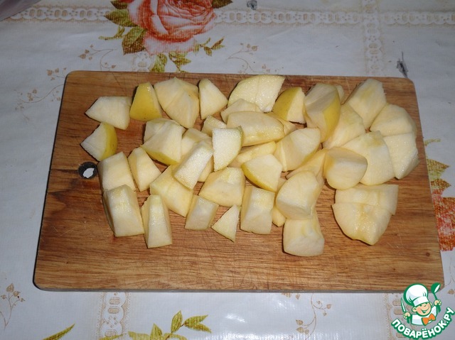 Через 1 час нарезаем кубиком промытые и очищенные яблоки.