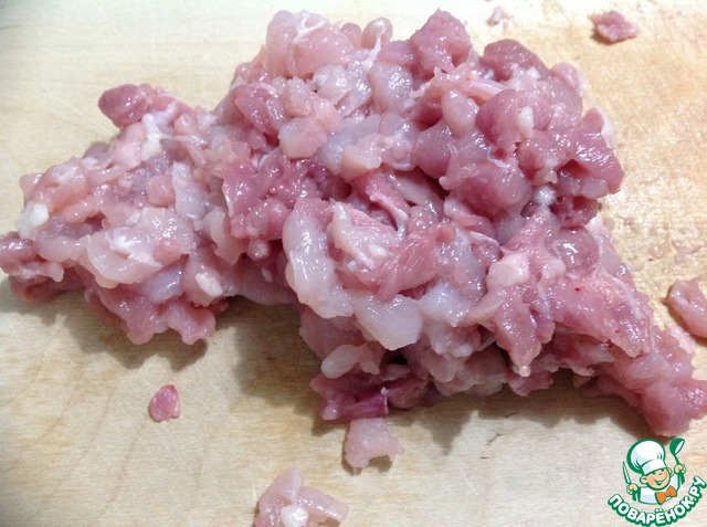 Обрезанное мясо мелко порубить ножом.