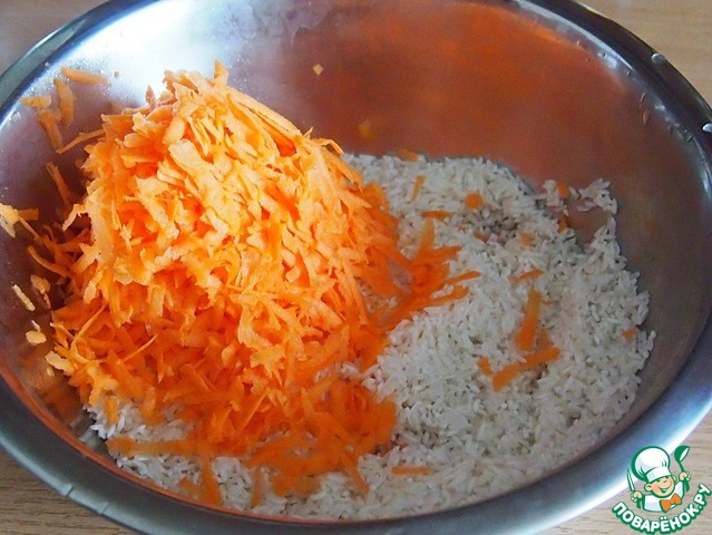 Тем временем вымыть рис и натереть морковку на крупной терке.
