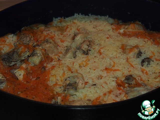 | Среди множества вариантов плова с курицей, мой отличается способом приготовления. Многие бояться браться за плов, потому что рис капризный продукт, имеет тенденцию разваливаться при варке и превращаться в кашу, поэтому его на всякий случай лучше варят отдельно да и разговоры о том, что "а плов-то настоящий" и только узбекский имеет право на жизнь тоже как-то не вдохновляют. Признавая все регалии узбекского плова, мой вариант расчитан для приготовления в условиях городской кухни для занятых женщин, которым нужно сытно, быстро и вкусно накормить семью. |
